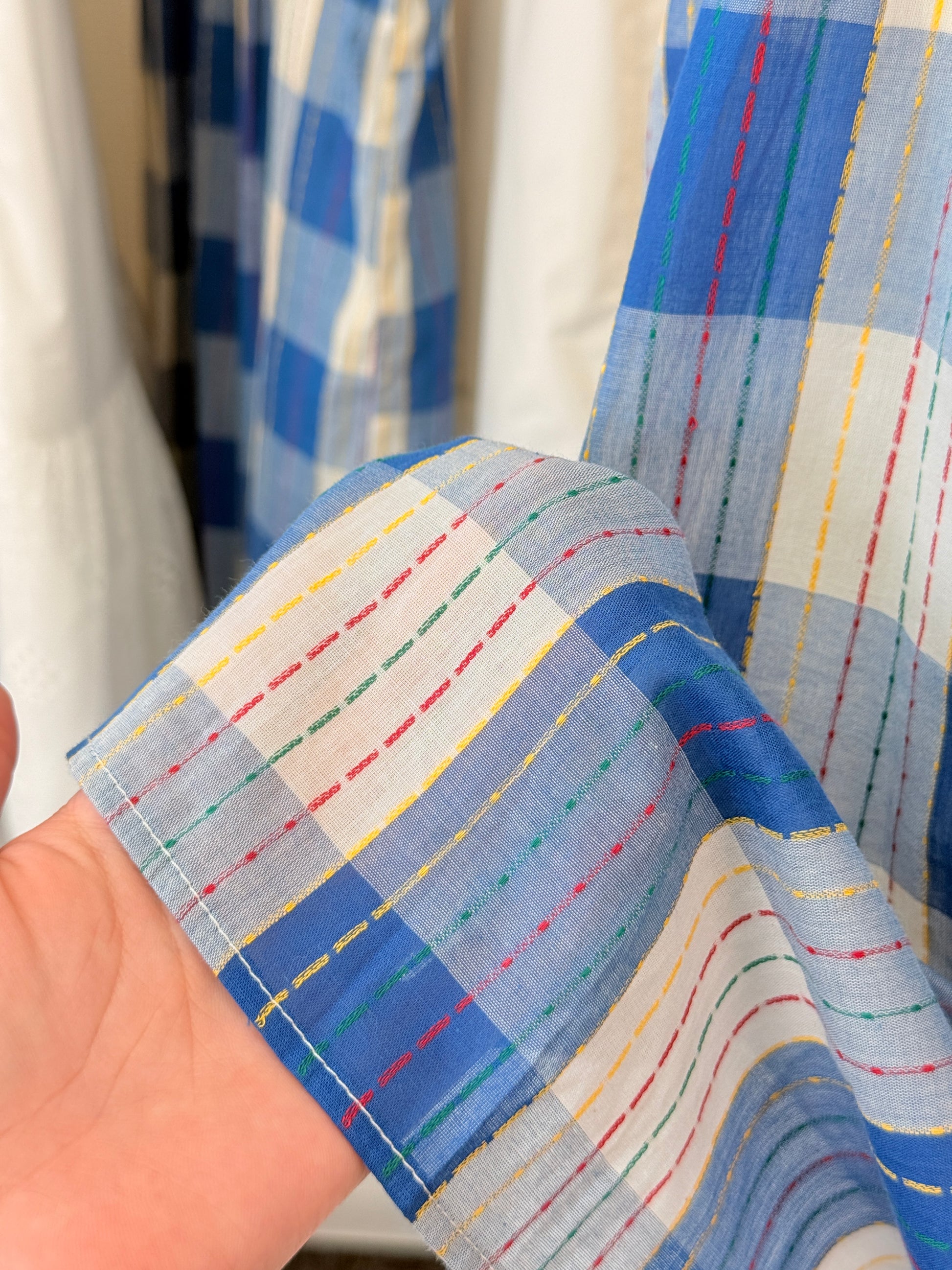 • トップス:ブルーチェック(マルチカラーステッチ)